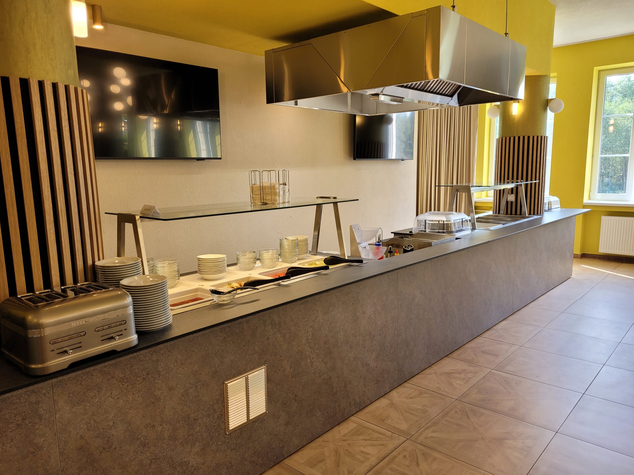 Raňajky sú podávané formou teplého a studeného bufetu. Obedy a večere sú servírované s možnosťou výberu z 3 jedál, k dispozícii je šalátový bufet.