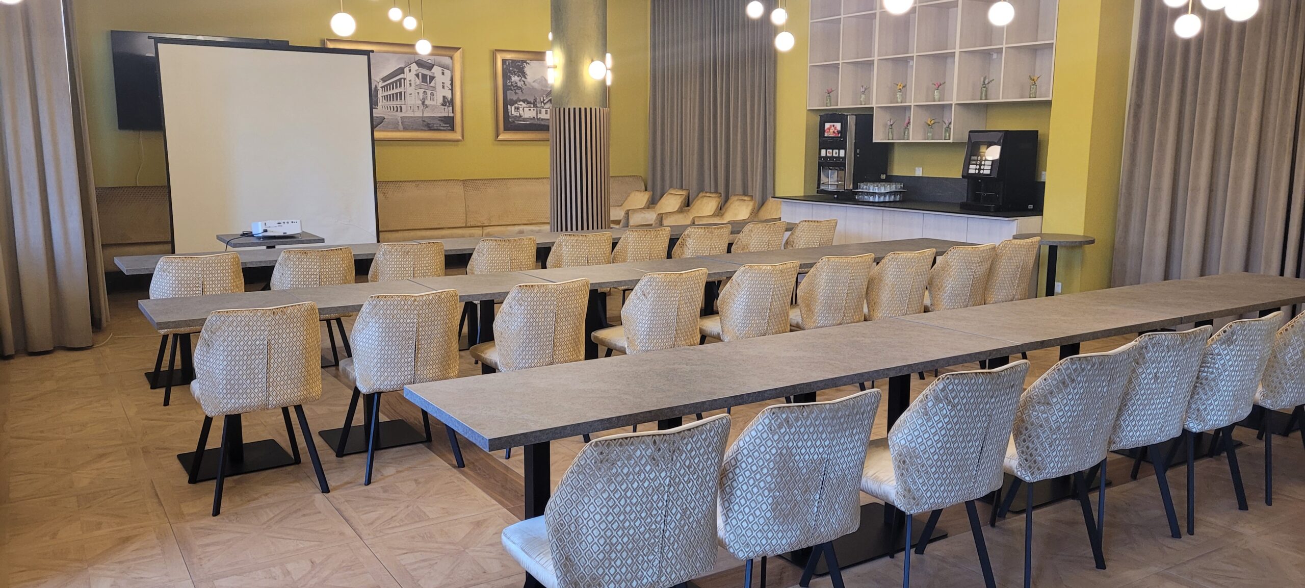 - Konferenčné priestory sú vybavené internetom, prenosným projektorom, projekčným plátnom na projektor a mobilným flipchartom (vrátane príslušenstva).