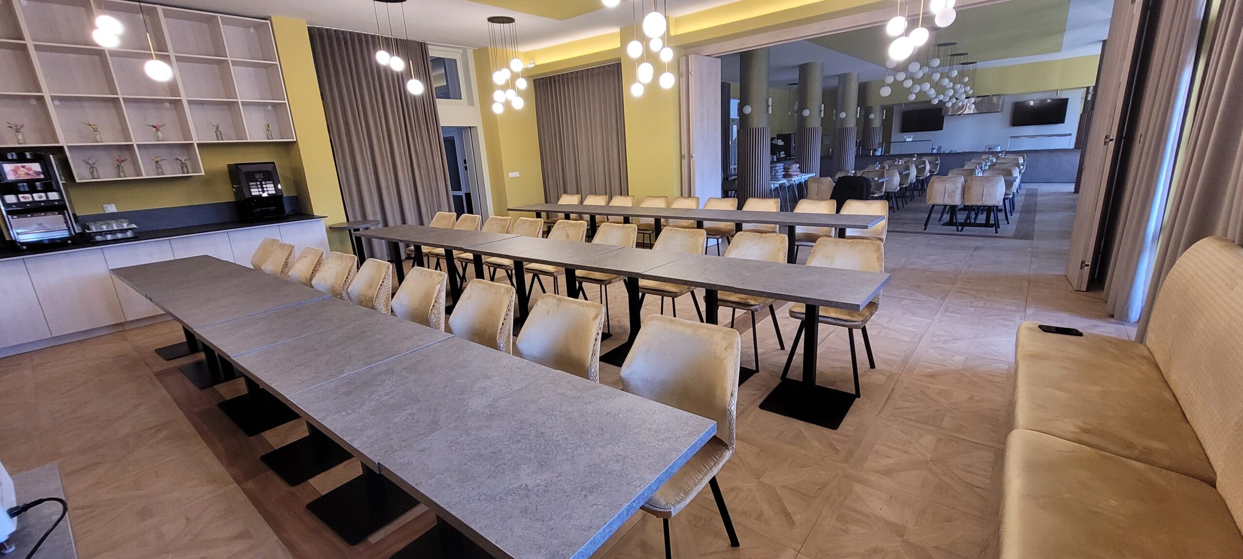 - Banket II. (stoly s stoličky v tvare I) – sedenie okolo nich, kapacita 48 osôb.